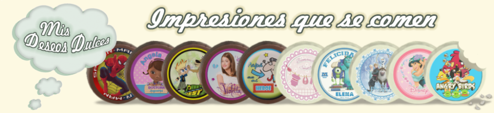 También imprimimos con tinta comestible y a todo color, láminas de choco-transfer que te permitirán decorar facilmente tus creaciones con chocolate.